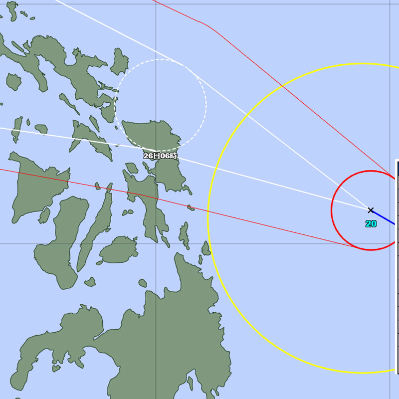現時点での台風情報によればセブ島への上陸の可能性は薄いと思われますが、明日26日は雨、風が強まるのではないかと予想されます。